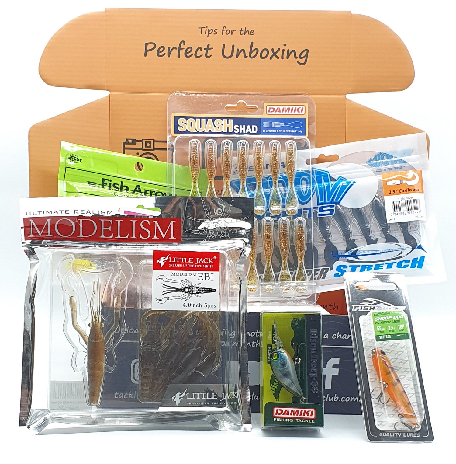 Your box of happiness arrives at your doorstep and it comes with an assortment of lures and accessories designed to enhance your fishing success.